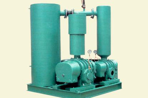 雙級高壓羅茨鼓風(fēng)機是一種常用的鼓風(fēng)機,它是一種由兩臺羅茨鼓風(fēng)機串聯(lián)組成的裝置。每臺風(fēng)機箱體內(nèi)部均有兩個轉(zhuǎn)向相反的三葉型轉(zhuǎn)子,每個三葉型轉(zhuǎn)子用兩個軸承支撐,利用一對高精度的同步直齒輪,使兩個轉(zhuǎn)子的相對位置始終保持不變,轉(zhuǎn)子之間以及轉(zhuǎn)子與箱體之間保持一定的間隙,無接觸旋轉(zhuǎn)。轉(zhuǎn)子在側(cè)箱體同步齒輪的驅(qū)動下,借助兩轉(zhuǎn)子的“嚙合”,使進氣口與出氣口相互隔開,完成箱體和轉(zhuǎn)子間的密閉氣體從吸入側(cè)到吐出側(cè)的移送過程。在旋轉(zhuǎn)過程中無內(nèi)壓縮地將工作腔內(nèi)的氣體從進氣口推移到出氣口。轉(zhuǎn)子與轉(zhuǎn)子、轉(zhuǎn)子與箱體、轉(zhuǎn)子與墻板之間都有微小間隙,因而工作腔內(nèi)沒有摩擦,無接觸磨損部分。